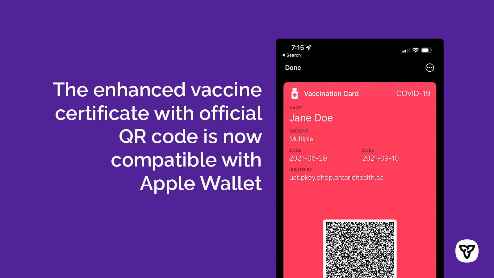 Ontario Ministry Of Health On Twitter Individuals Who Use Iphones Can Now Choose To Add Their Enhanced Vaccine Certificate With Official Qr Code Directly To Their Apple Wallet This Feature Is Available